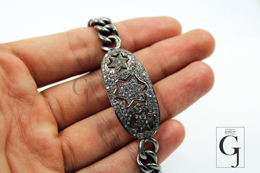 Antique Look Oxidized Star Designer Bracelet Rosecut Pave Diamond Bangle Bracelet 925 Sterling Silver Handmade Finish Diamond Bangle Bracelet