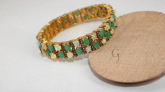 14k Gold Finish Emerald And Opal Bracelet Jewelry Rosecut Pave Diamond Bracelet 925 Sterling Silver Handmade Finish Diamond Bangle Bracelet