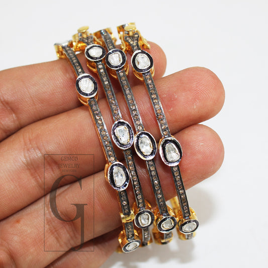 14k Gold Finish Polki Flat Diamond B angle Rosecut Pave Diamond Bangle Bracelet 925 Sterling Silver Handmade Finish Diamond Bangle Bracelet
