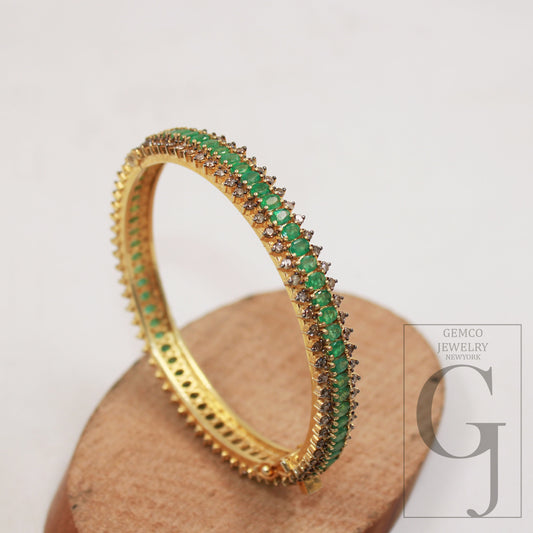 18k Gold Finish emerald bangle Rosecut Pave Diamond Bangle Bracelet Sterling Silver Handmade Finish Diamond Bangle Bracelet Emerald Jewelry
