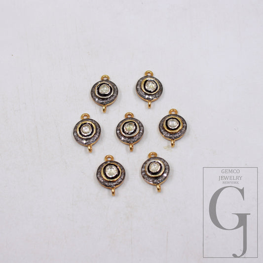 1pc Connector Flat Diamond Designer Rosecut Pave Diamond Bracelet Connector 925 Sterling Silver Handmade Finish Diamond Connector Jewelry