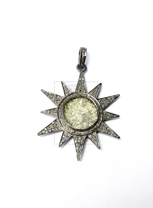 Star burst shaker designer Rosecut pave diamond bracelet connector 925 sterling silver handmade finish Beautiful diamond pendant jewelry