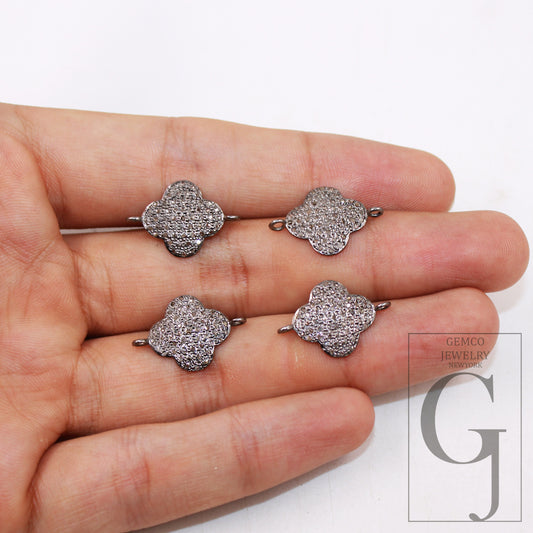 1pc Beautiful Design Diamond Connector Charm Pave Diamond Rosecut Connector 925 Sterling Silver Handmade Diamond Bracelet Connector Jewelry