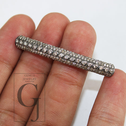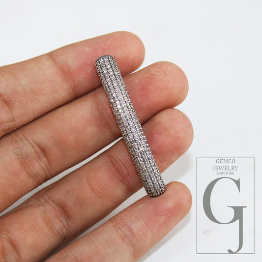AAA Brilliant Cut Pave Diamond Connector 925 Sterling Silver Connector Handmade Diamond Tube Diamond Bracelet Connector Ready To Use Finding