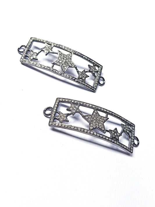 Pave diamond rosecut connector 925 sterling silver finish handmade diamond charm star design beautiful diamond bracelet connector