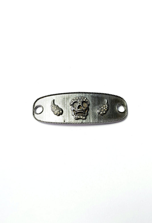 Skull design Rosecut pave diamond bracelet connector 925 sterling silver handmade finish enameling diamond connector charm halloween gift