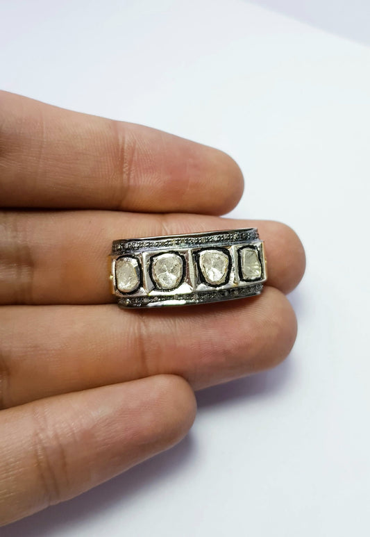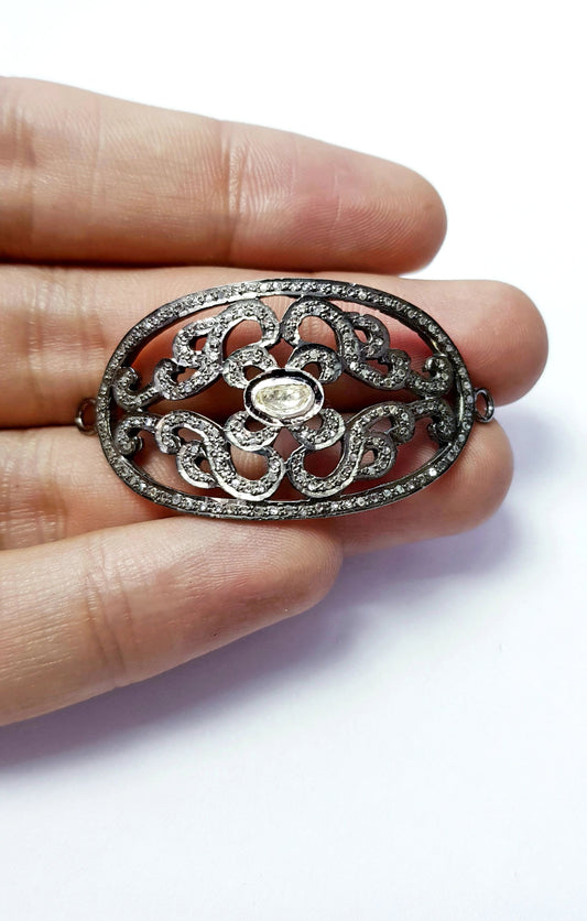 slice diamond Pave diamond rosecut connector 925 sterling silver connector handmade diamond connector pave pokli diamond bracelet connector