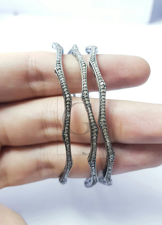 1pc Beautiful Designer Rosecut Pave Diamond Bangle 925 Sterling Silver Handmade Finish Diamond Bangle