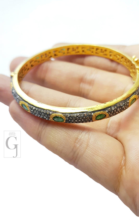 Beautiful Diamond Emerald Bangle 14k Gold Finish Bracelet Designer Rosecut Pave Diamond Bangle 925 Sterling Silver Handmade Finish