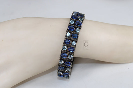 Antique Look Kyanite Bluetopaz Bracelet Jewelry Rosecut Pave Diamond Bracelet 925 Sterling Silver Handmade Finish Diamond Bangle Bracelet