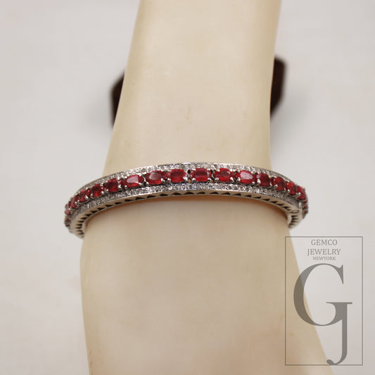 Red Ruby Bangle Rosecut Pave Diamond Bangle Bracelet 925 Sterling Silver Handmade Finish Diamond bangle Bracelet Wrist Ruby Jewelry