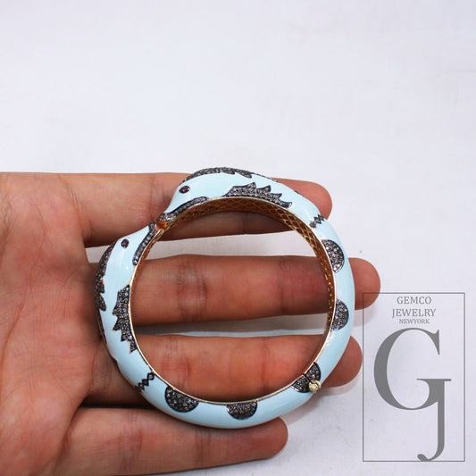 Enameled designer bracelet star bangle Rosecut pave diamond bangle bracelet 925 sterling silver handmade finish diamond bangle bracelet