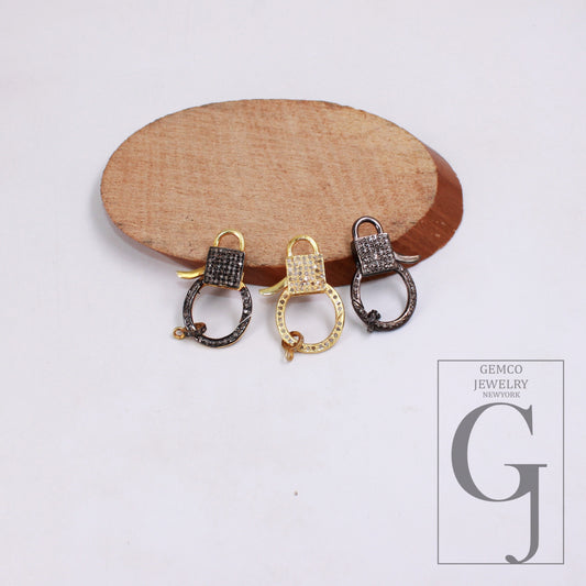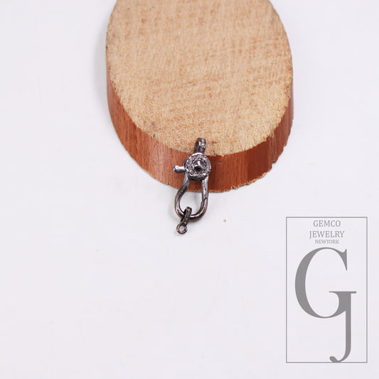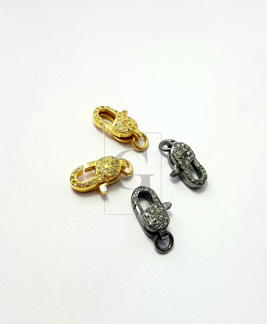 1 pcs Pave Diamond 925 Sterling Silver Handmade Rose Cut Pave Diamond Lobster Clasp Pave Diamond Clasp 15mm Size Oxidized Vermail Gold White