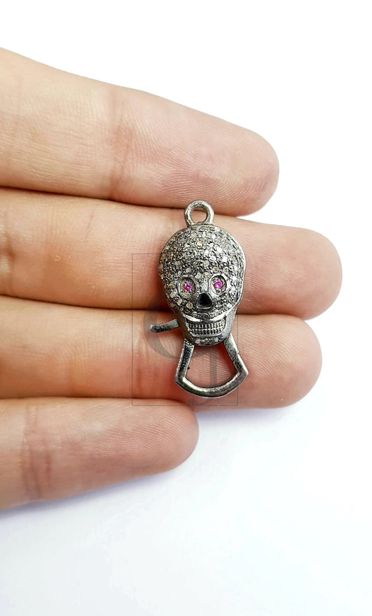 Lates Skull design Rosecut pave diamond lobster design clasp 925 sterling silver handmade finish clasp with matching diamond jump ring