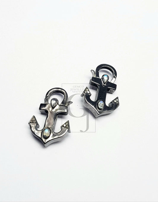 Ship Anchor Designer Pave Rosecut Diamond 925 Sterling Silver Handmade Very Beautiful Pave Diamond Natural Moonstone Lobster Clasp Charm