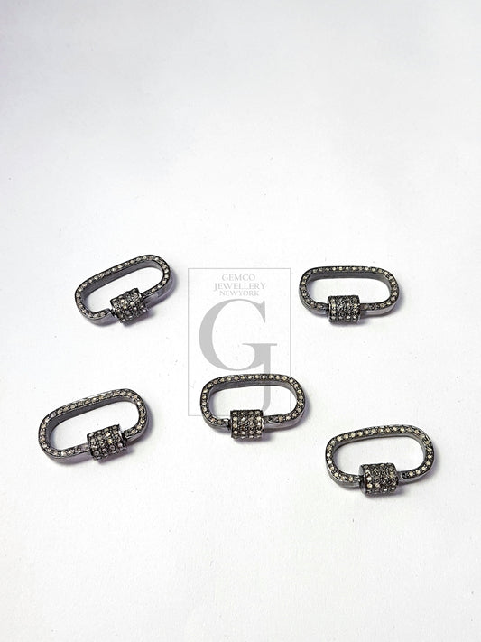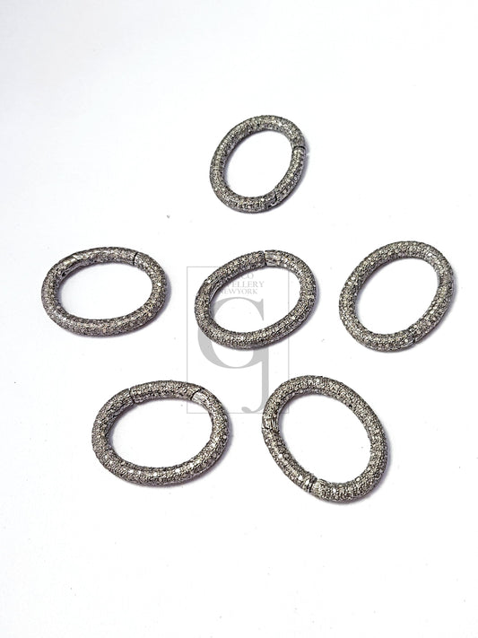 Pave diamond clasp,rose cut diamond pave clasp,925 sterling silver diamond handmade pave diamond oval clasp, oval diamond screw clasp 20mm