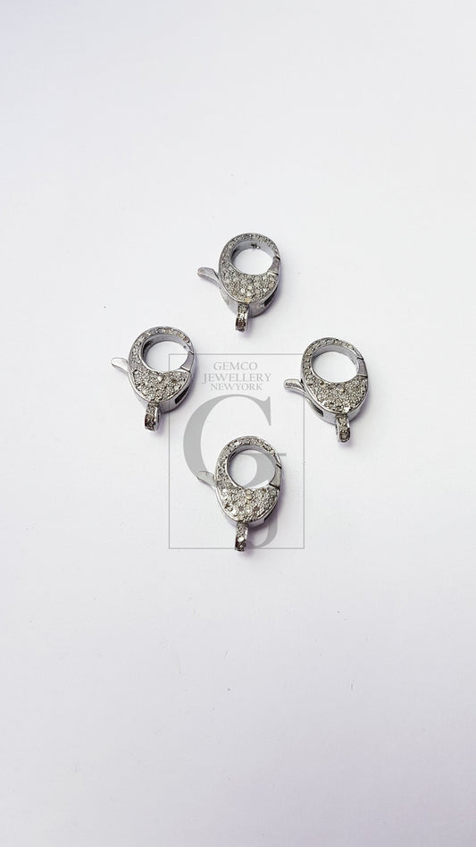 Latest Design Rosecut Pave Diamond Lobster Design Clasp 925 Sterling Silver Handmade Finish Diamond Clasp 23mm Size With Matching Jump Ring