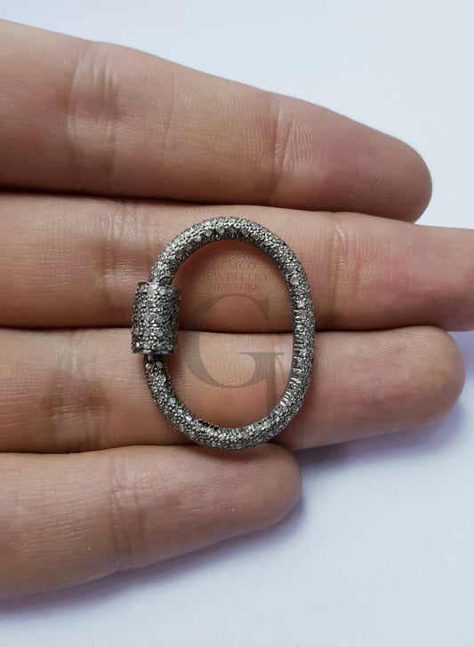 Pave Diamond Clasp Rose Cut Diamond Pave Clasp,925 Sterling Silver Diamond Handmade Pave Diamond Oval Clasp, Oval Diamond Screw Clasp 20mm