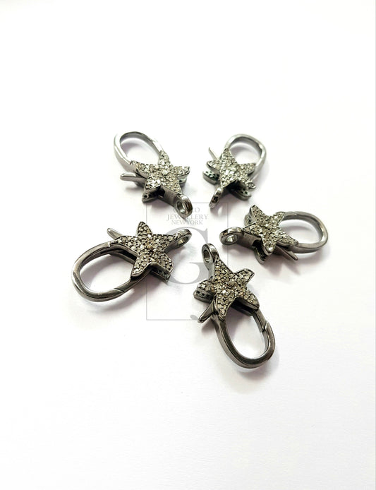 Star Design Rosecut Pave Diamond Lobster Design Clasp 925 Sterling Silver Handmade Finish Diamond Clasp 27mm Size With Matching Jump Ring