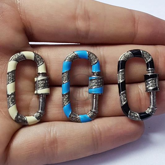 Enamel Color Carabiner Design Clasps Pave Rosecut Diamond 925 Sterling Silver Handmade Oval Shape Design Pave Diamond Handmade Charms