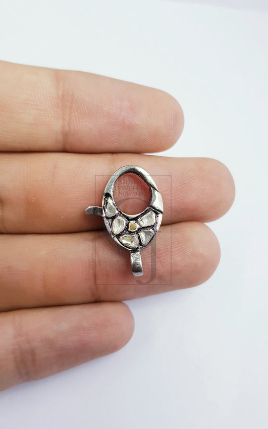 1 pcs Pave Diamond 925 Sterling Silver Handmade Rose Cut Pave Diamond Lobster Clasp, Pave Diamond Clasp 22mm Size Jewelry Supplies