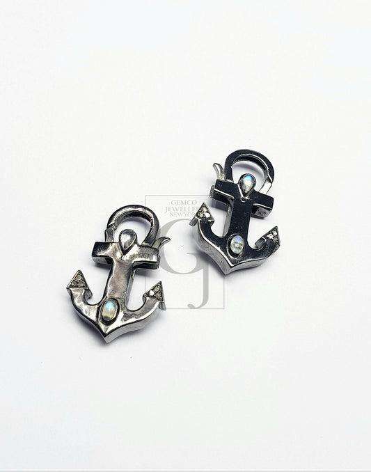 Ships anchor designer Pave rosecut diamond 925 sterling silver handmade very beautiful pave diamond moonstone lobster clasp charm