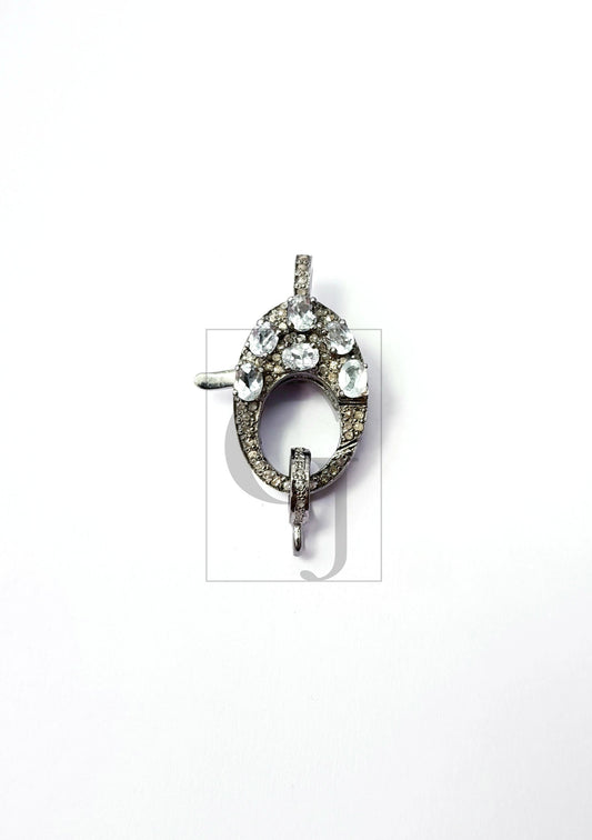 Rosecut Pave Diamond Clasp, Pave Diamond Clasp, 925 Sterling Silver Handmade Finish Color Stones Diamond Clasp With Matching Jump Ring