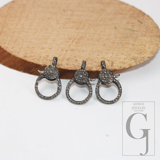 Beautiful Designer Rosecut Pave Diamond Screw Design Clasp 925 Sterling Silver Handmade Finish Round Shaped Clasp