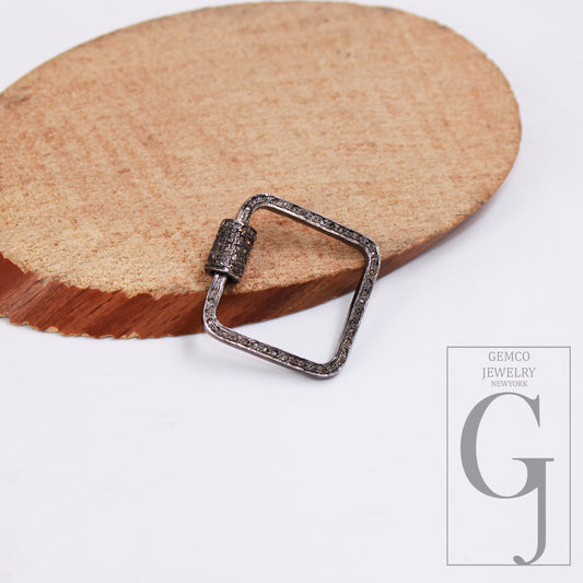Square shaped pave diamond screw clasp, pave diamond clasp, lock, Rocecut pave diamond clasp, 925 sterling silver handmade diamond charm