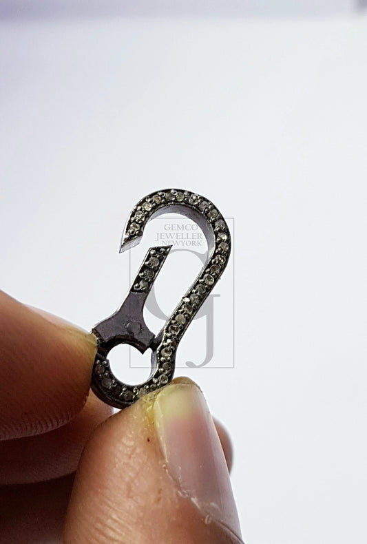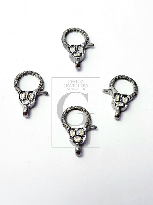 Beautiful Designed Rosecut Pave Diamond Lobster Design Clasp 925 Sterling Silver Handmade Finish Clasp