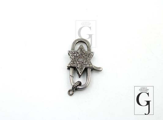 Star Design Clasp Rosecut Pave Diamond Star Brust Spring Clasp 925 Sterling Silver Handmade Finish Diamond Necklace Clasp