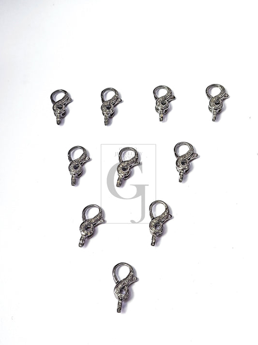 1pc Fashionable Rosecut Pave Diamond Lobster Design Clasps 925 Sterling Silver Handmade Finish Diamond Clasps Jewelry Making Supplies