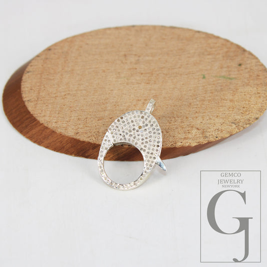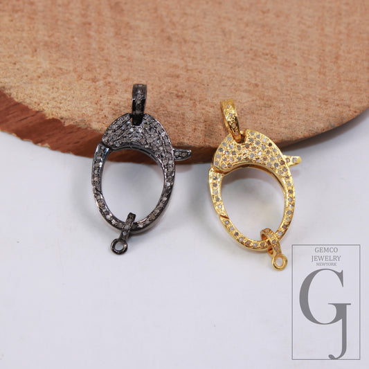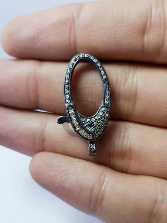 Rosecut pave diamond lobster design clasp 925 sterling silver handmade finish flat diamond clasp
