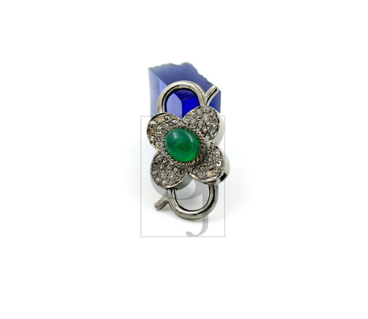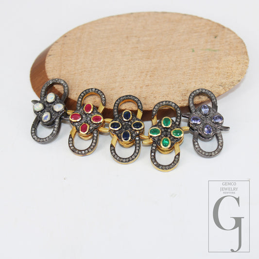1pc Rosecut Pave Diamond Double Design Spring Clasps 925 Sterling Silver Handmade Finish Diamond/Sapphire/Ruby/Emerald/Opal/Tanzanite Clasps