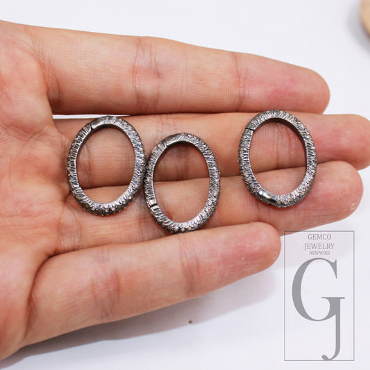 1pc Oval Oxidized / Vermail Gold Rosecut Pave Diamond Design Necklace Clasp 925 Sterling Silver Handmade Finish Diamond Pendant Clasp 25mm