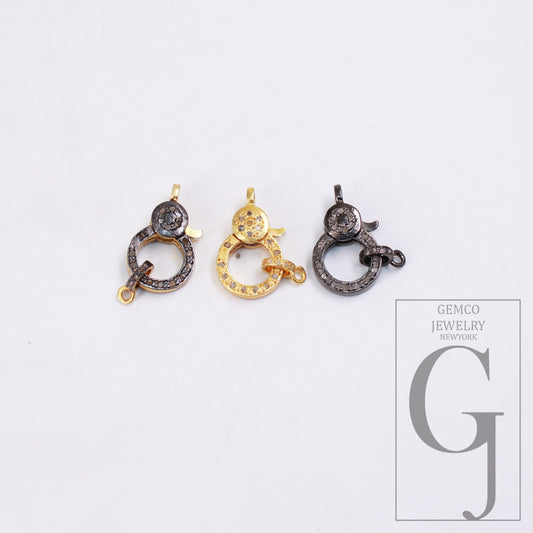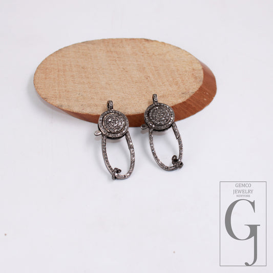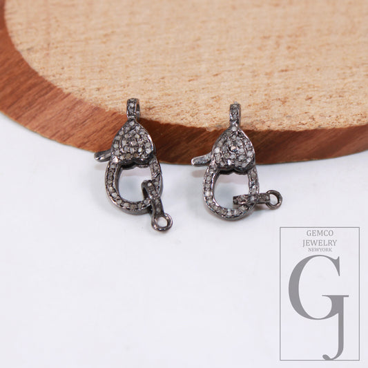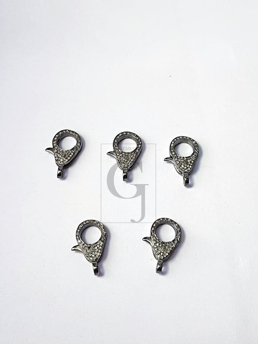 1pc Strong Rosecut Pave Diamond Clasps 925 Sterling Silver Handmade Finish Diamond Lobsters Clasps Marching Clasp Rings Oxidized Finish Lock