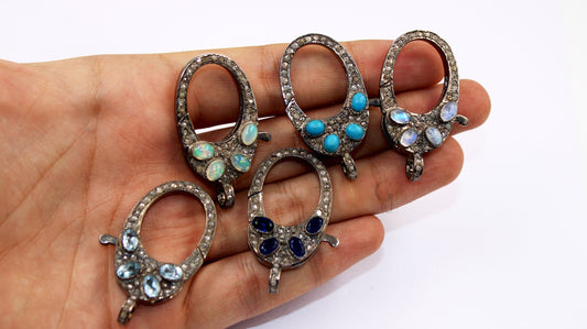 1pc You Choose Stone Clasp Rosecut Pave Diamond Lobster Clasps 925 Sterling Silver Handmade Finish Diamond/Sapphire/Ruby/Emerald Clasps