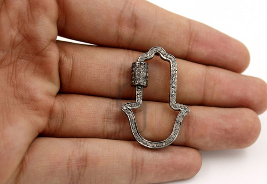 1pc Pave Diamond 925 Sterling Silver Finish Hamsa Shaped Oxidized Screw Design Locks Clasp Charms Carabiner Lock Necklace Making Supplies