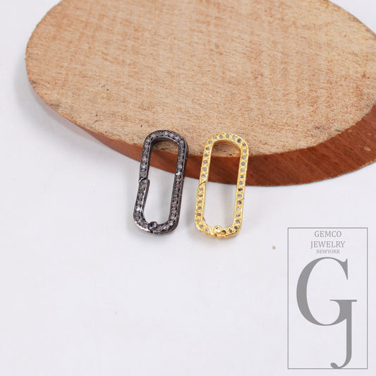 Pave Diamond Clasp,Diamond Lobster Clasp,Oval Shape Screw Design Clasp, Pave Rosecut Diamond Clasp,Sterling Silver Handmade Clasp,