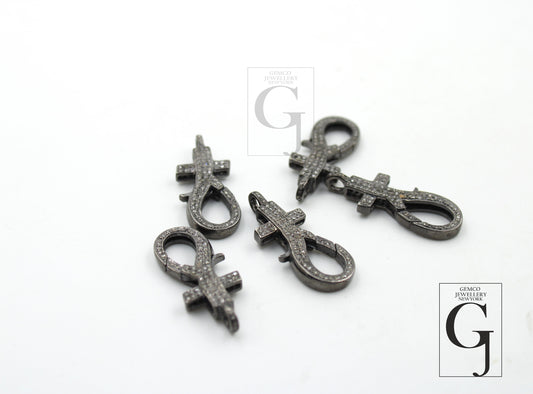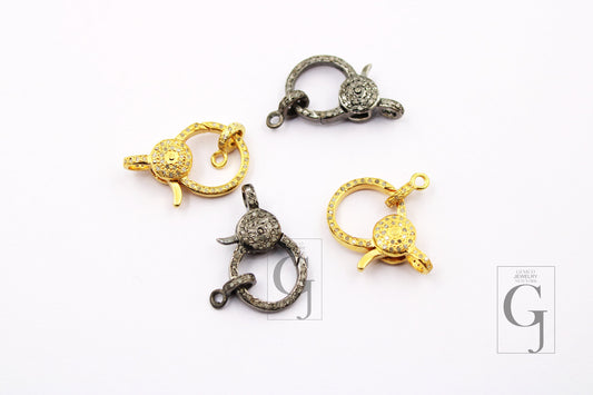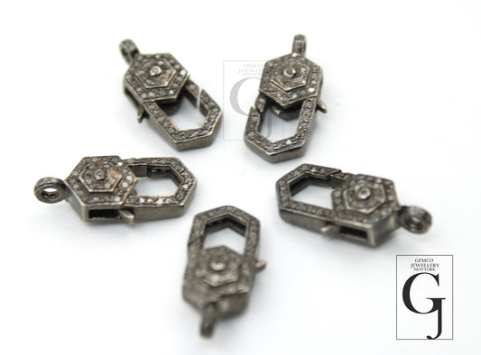 1pc Pave Diamond Lobster Clasp Pave Rosecut Diamond 925 Sterling Silver Handmade Pave Diamond Locks Sterling Pave Diamond Gemstone Clasps
