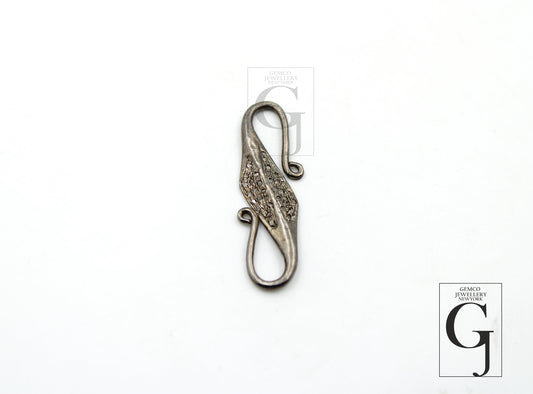 Antique Look Rosecut Pave Diamond Design S Lock 925 Sterling Silver Handmade Finish Diamond Necklace Clasp