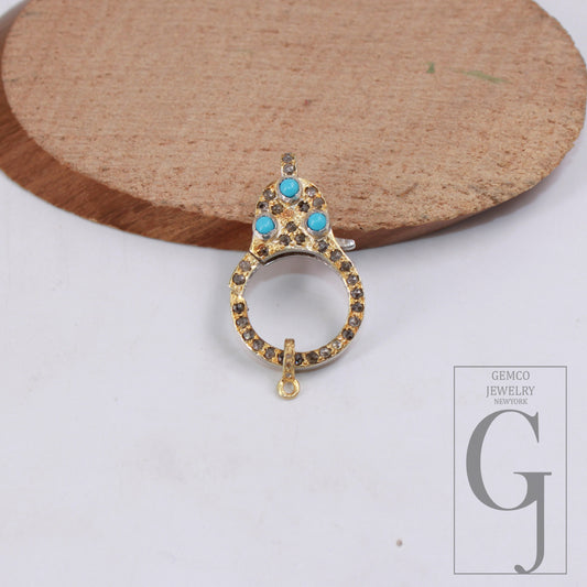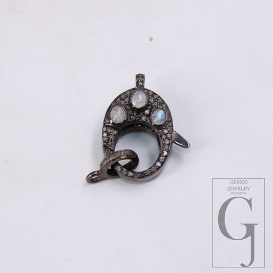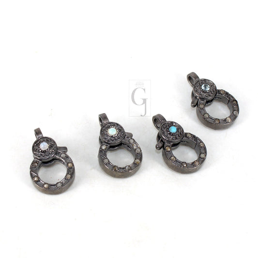 1pc Rosecut Pave Diamond Lobster Design Clasps 925 Sterling Silver Handmade Finish Diamond/Sapphire/Opal/Turquoise/Moonstone Clasps Supplies