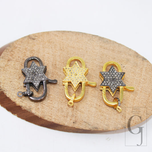1pc Design Lobster Clasp Rosecut Pave Diamond Starburst Spring Clasp 925 Sterling Silver Handmade Finish Diamond Necklace Clasp Sale Jewelry
