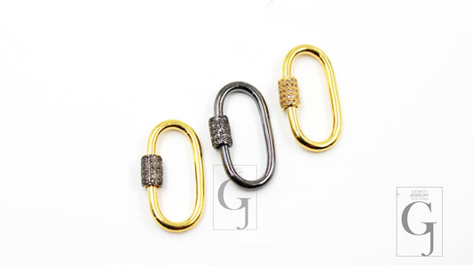 Pave Diamond 14k Gold 925 Sterling Silver Finish Oval Shaped Black And Gold Colored Screw Design Locks Clasp Necklace Charms