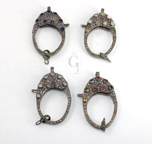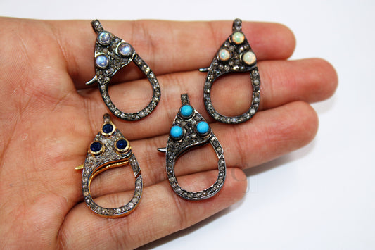 1pc Rosecut Pave Diamond Lobster Design Clasps 925 Sterling Silver Handmade Finish Diamond/Sapphire/Opal/Turquoise/Moonstone Clasps Supplies
