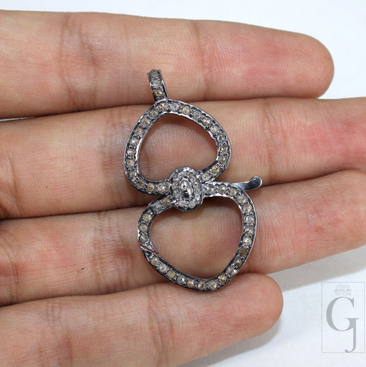 Heart Shape Antique Look Rosecut Pave Diamond Design Lobster Clasps 925 Sterling Silver Handmade Finish Diamond Necklace Clasp