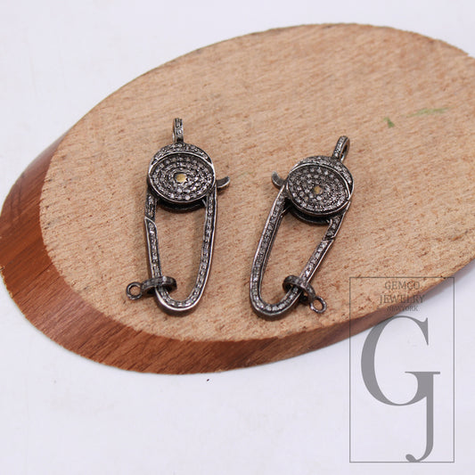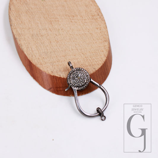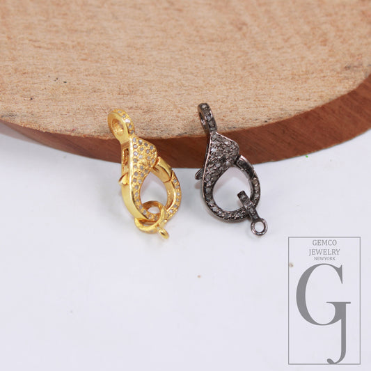 1pc Fashionable Rosecut Pave Diamond Designer Lobster Clasp 925 Sterling Silver Handmade Finish Diamond Clasp 20mm Size