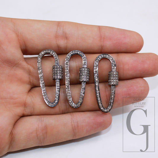 1pc Carabiner Lock Designer Diamond Clasp Rosecut Pave Diamond Screw Design Clasp 925 Sterling Silver Handmade Finish Clasp Necklace Jewelry