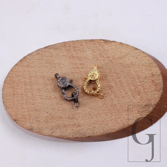 Latest design rosecut pave diamond lobster design clasp 925 sterling silver handmade finish double sided diamond clasp