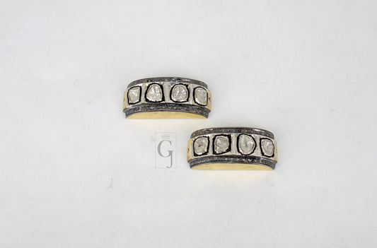 slice diamond Pave diamond rosecut connector 925 sterling silver connector handmade diamond connector pave pokli diamond bracelet connector